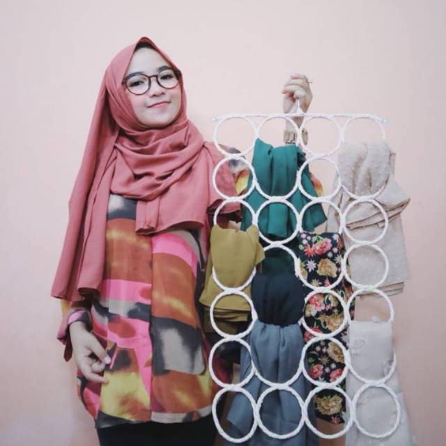 Dengar hanger ini anda bisa merapikan syal atau jilbab anda.
