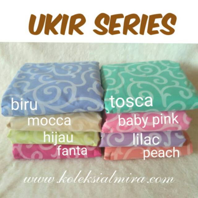 Biru, Mocca, Hijau, Fanta, Tosca, Pink, Lilac, Peach.