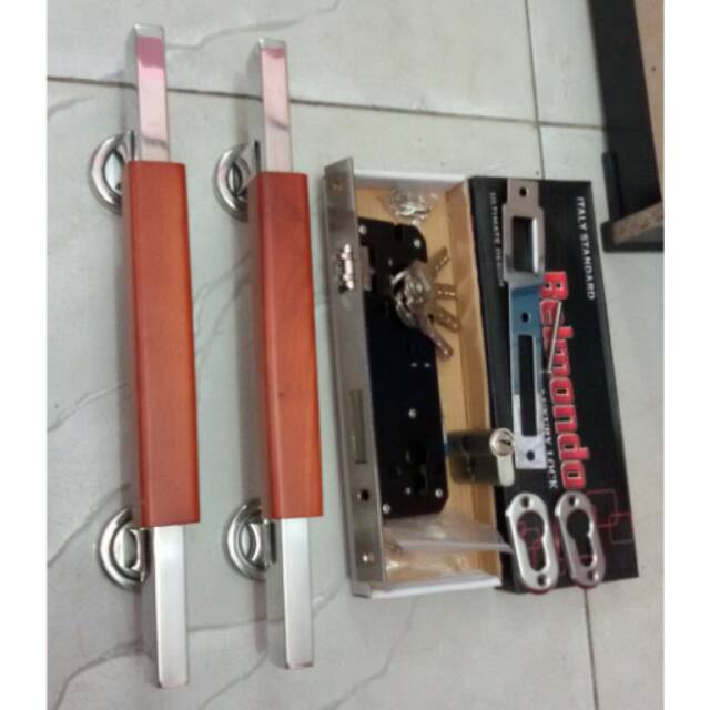 Handle pintu stainless 33cm 1set(2 gagang)+ body pelor belmondo comp key isi 4 anak ku
