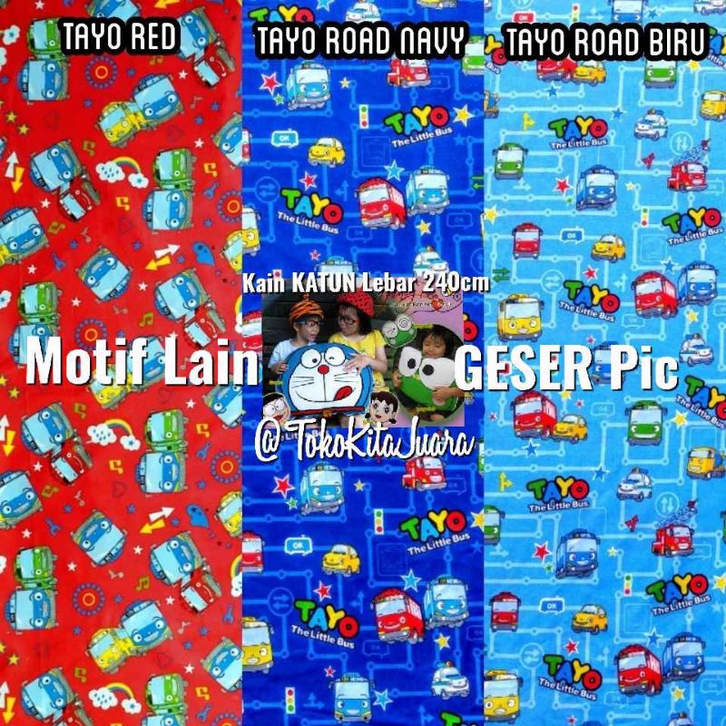 Name: Tayo The Little Bus, Bahan Kain Katun Meteran Uk. 1m X 2.4m